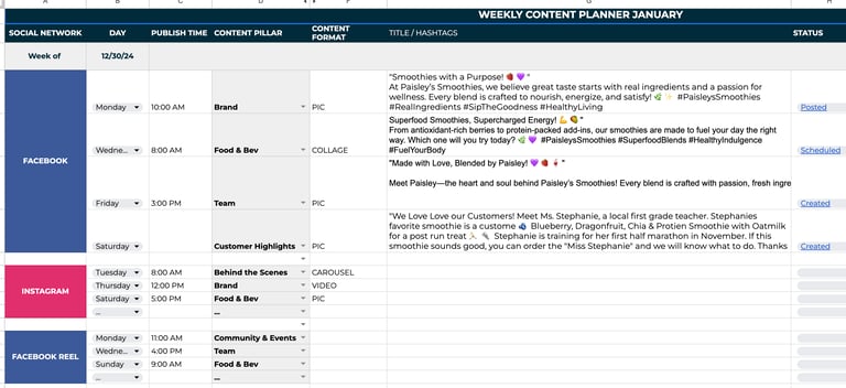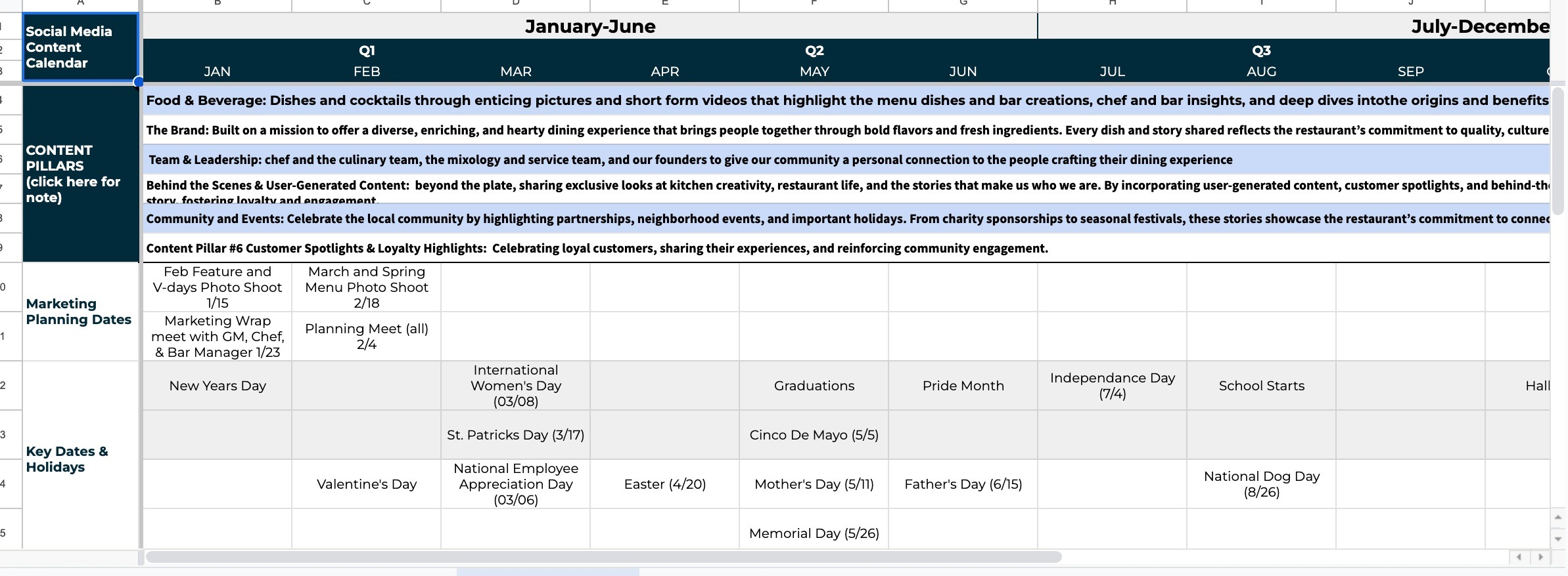 This free Google Sheet download is easy to use and will show you how to plan out your entire Social Media andDigital Marketing Strategy and Content in one place.